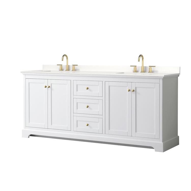 • White Double Bathroom Vanity in White Quartz Countertop 80 Inch image - 1