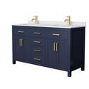 • Wyndham Collection Beckett 60 Inch Double Bathroom Vanity in Dark Blue, White Cultured Marble Countertop, Undermount Square Sinks, No Mirror image - 1