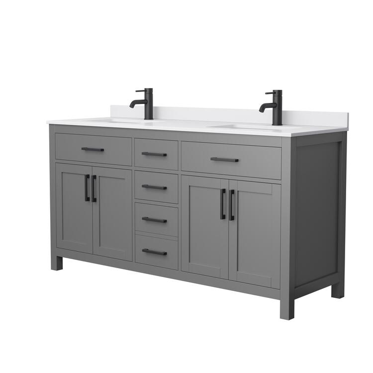 • Wyndham Collection Beckett 66 Inch Double Bathroom Vanity in Dark Gray, White Cultured Marble Countertop, Undermount Square Sinks, Matte Black Trim image - 1
