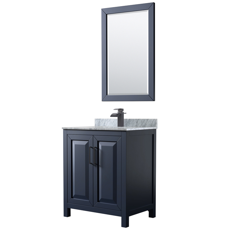 • Dark Blue Bathroom Vanity with White Carrara Marble & Square Sink image - 1