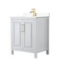 • 30 Inch White Bathroom Vanity Cultured Marble Countertop Gold Trim image - 1