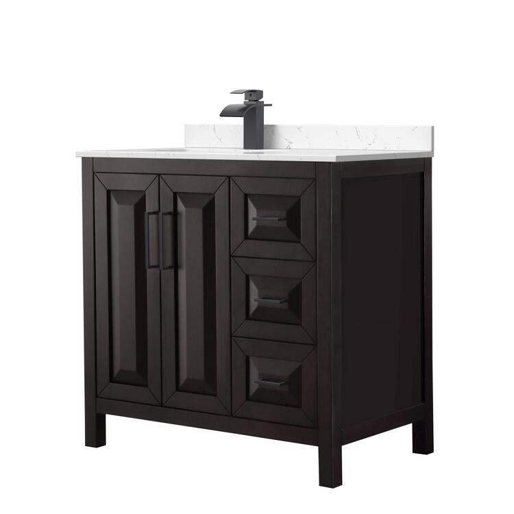 • Wyndham Collection Daria 36 Inch Single Bathroom Vanity in Dark Espresso, Carrara Cultured Marble Countertop, Undermount Square Sink, Matte Black Trim image - 1