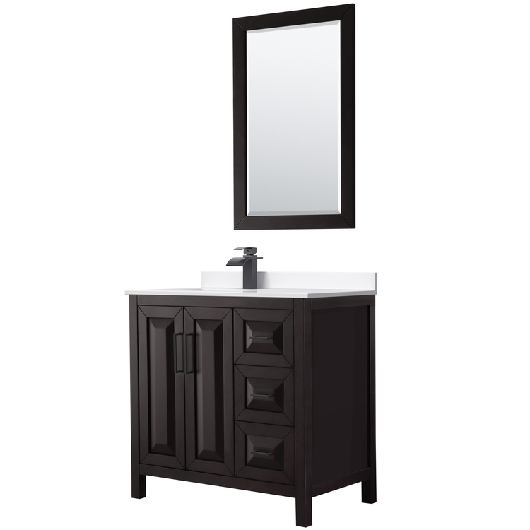 • Wyndham Collection Daria 36 Inch Single Bathroom Vanity in Dark Espresso, White Cultured Marble Countertop, Undermount Square Sink, Matte Black Trim, 24 Inch Mirror image - 1