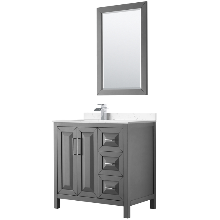 • Gray Bathroom Vanity with Marble Countertop and Chrome Trim image - 1