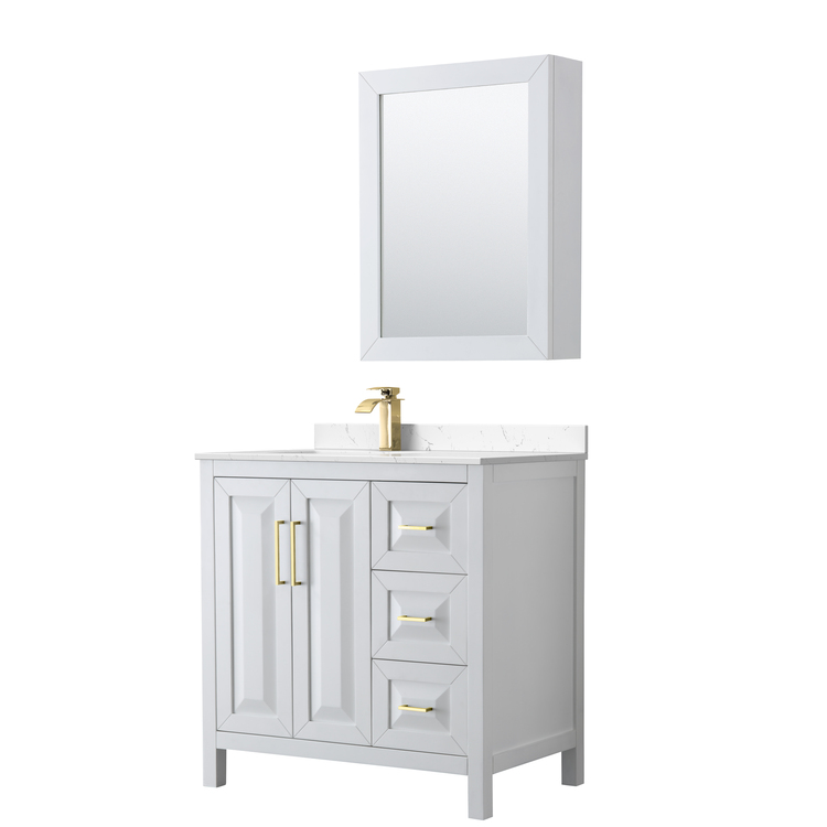 • 36 Inch Single Bathroom Vanity White Carrara Marble Countertop image - 1