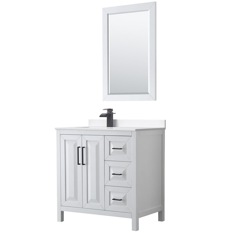 • Wyndham Collection Daria 36 Inch Single Bathroom Vanity in White, White Cultured Marble Countertop, Undermount Square Sink, Matte Black Trim, 24 Inch Mirror image - 1