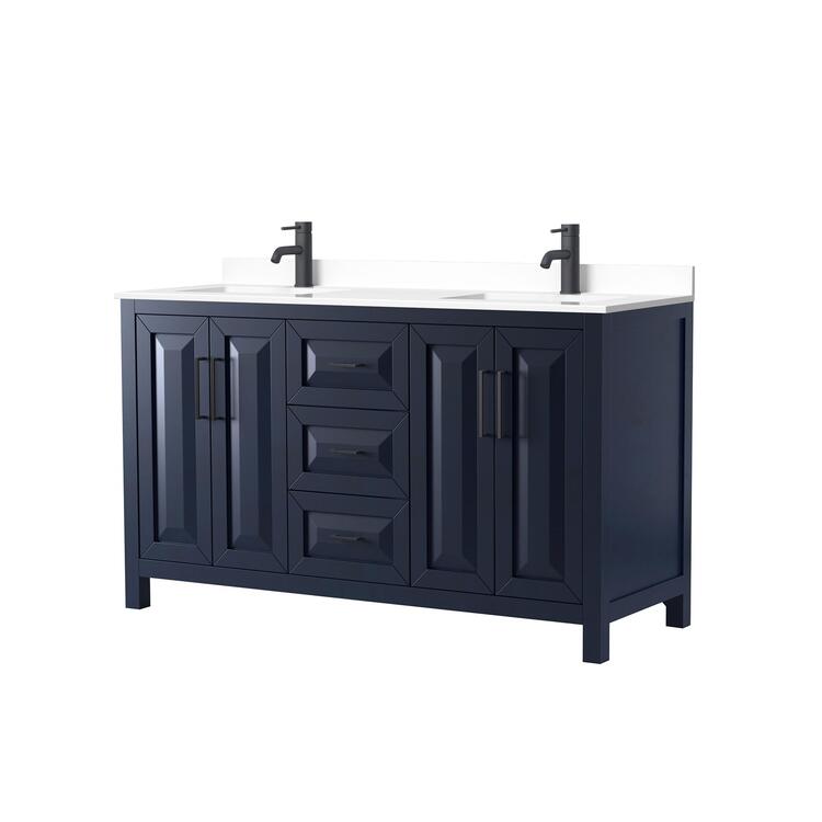 • Dark Blue Double Vanity with Dark Marble Countertop and Square Sinks image - 1
