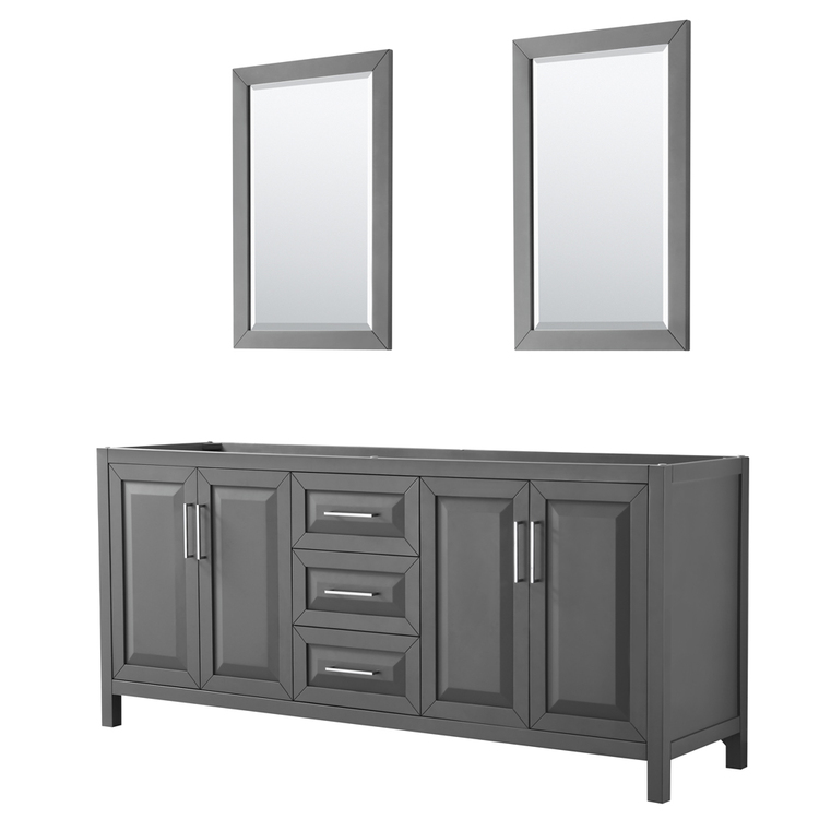 • Wyndham Collection Daria 80 Inch Double Bathroom Vanity in Dark Gray, No Countertop, No Sink, and 24 Inch Mirrors image - 1