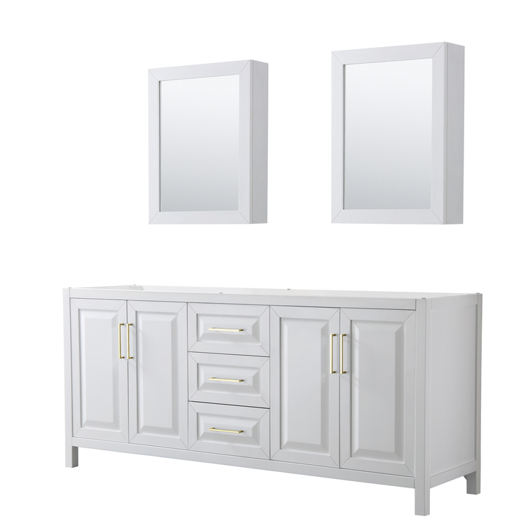 • Wyndham Collection Daria 80 Inch Double Bathroom Vanity in White, No Countertop, No Sink, Medicine Cabinets, Brushed Gold Trim image - 1