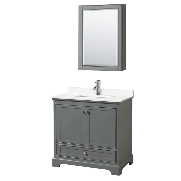 • 36 Inch Dark Gray Bathroom Vanity & White Quartz Countertop image - 1