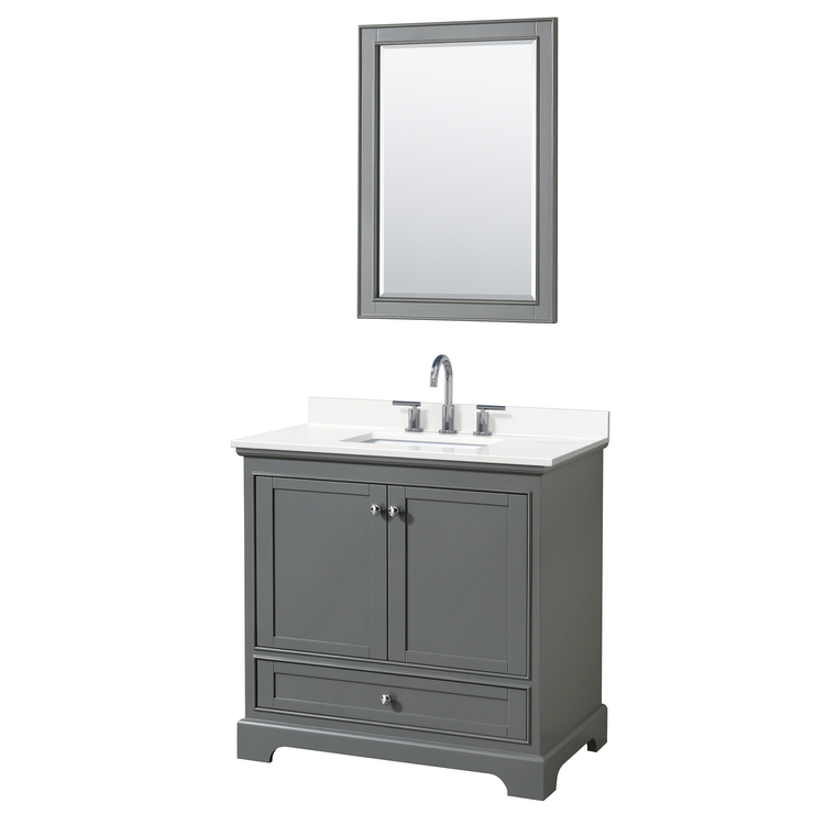 • Dark Gray Bathroom Vanity in Gray, White Quartz & Chrome Trim image - 1