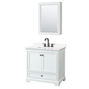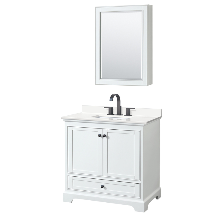 • Wyndham Collection Deborah 36 Inch Single Bathroom Vanity in White, White Quartz Countertop, Undermount Square Sink (3-Hole), Matte Black Trim, Medicine Cabinet image - 1