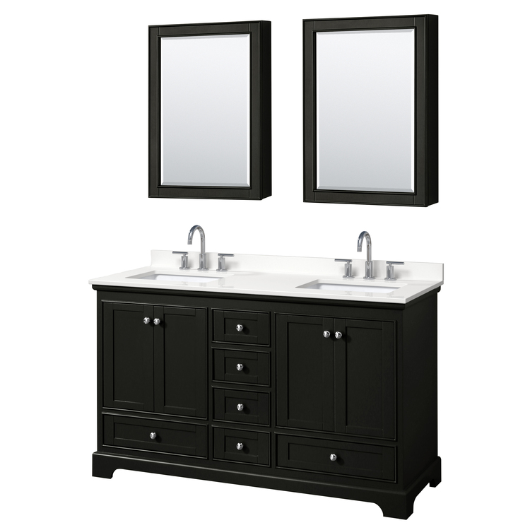 • Dark Espresso Double Bathroom Vanity with White Quartz & Square Sinks image - 1