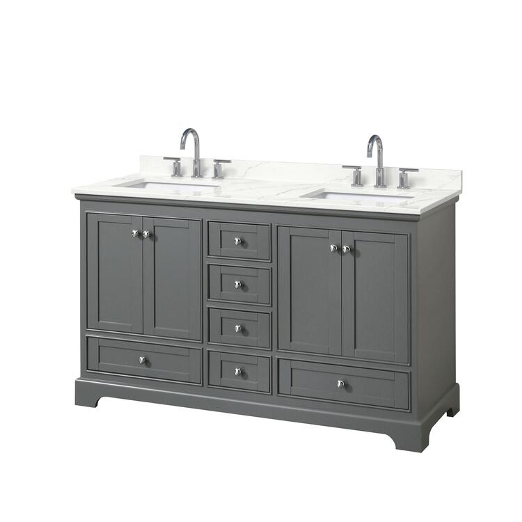 • Dark Gray Bathroom Vanity Giotto Quartz Countertop 60 Inch Double image - 1