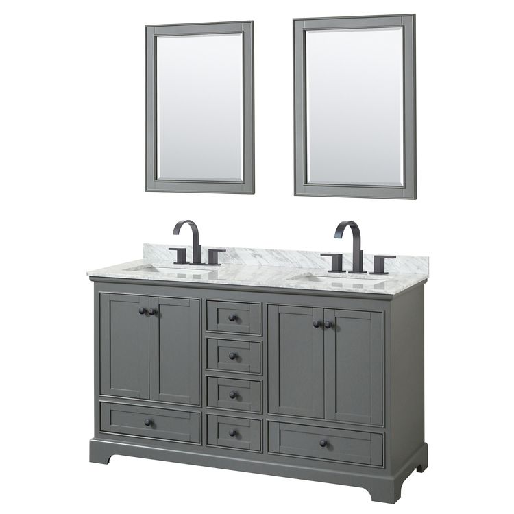 • Dark Gray Double Bathroom Vanity with White Marble & Matte Black Trim image - 1