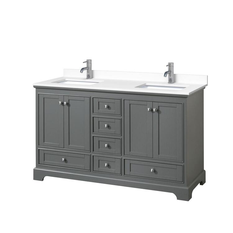 • Gray Double Vanity White Marble Undermount Sinks image - 1
