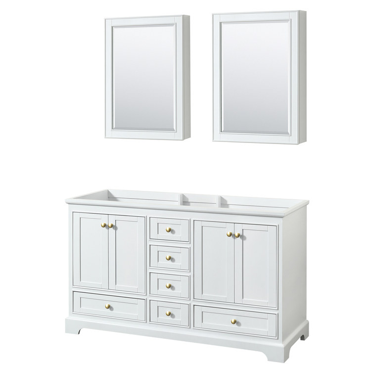 • Wyndham Collection Deborah 60 Inch Double Bathroom Vanity in White, No Countertop, No Sinks, Brushed Gold Trim, Medicine Cabinets image - 1