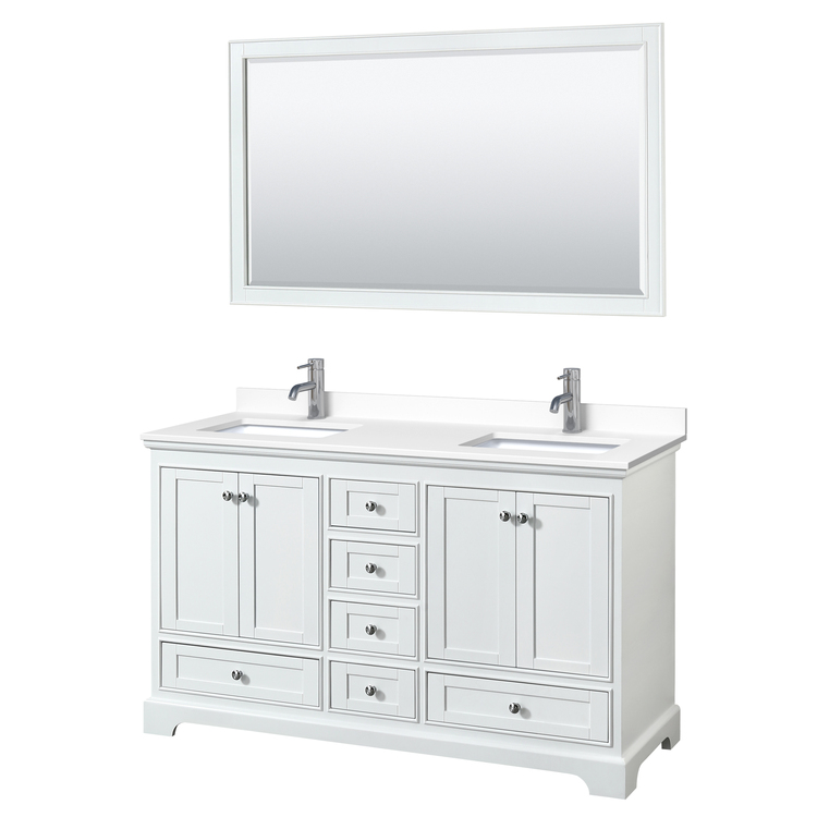 • Double Bathroom Vanity White Marble Sinks Mirror image - 1