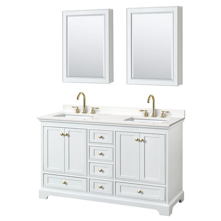 • White Double Bathroom Vanity in White Quartz and Brushed Gold Trim image - 1