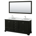 • Wyndham Collection Deborah 72 Inch Double Bathroom Vanity in Dark Espresso, White Carrara Marble Countertop, Undermount Square Sinks, and 70 Inch Mirror image - 1