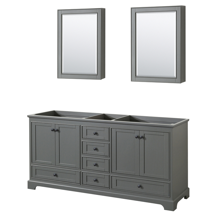 • Wyndham Collection Deborah 72 Inch Double Bathroom Vanity in Dark Gray, No Countertop, No Sinks, Matte Black Trim, Medicine Cabinets image - 1