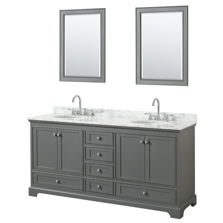 • Gray Double Bathroom Vanity with White Marble Countertop & Oval Sinks image - 1