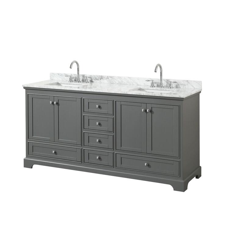 • Dark Gray Bathroom Vanity with White Marble Countertop and Sinks image - 1