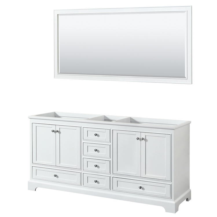 • Wyndham Collection Deborah 72 Inch Double Bathroom Vanity in White, No Countertop, No Sinks, and 70 Inch Mirror image - 1