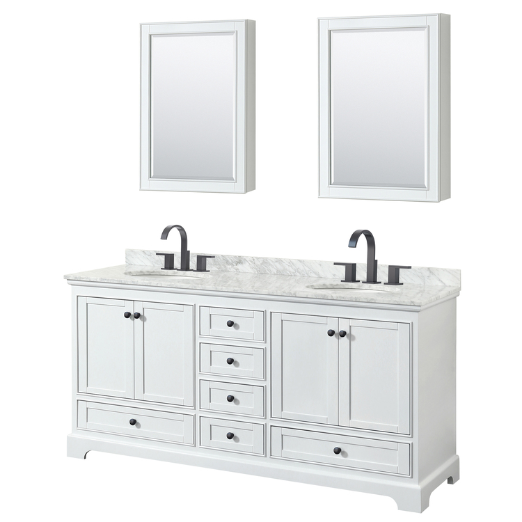 • 72 Double Vanity Set with Carrara Marble and Matte Black Trim image - 1