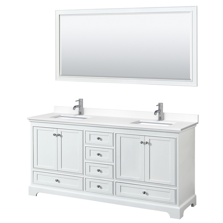 • Wyndham Collection Deborah 72 Inch Double Bathroom Vanity in White, White Cultured Marble Countertop, Undermount Square Sinks, 70 Inch Mirror image - 1