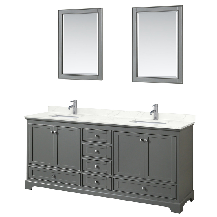 Gray Double Bathroom Vanity with Quartz Countertop and Polished Chrome Hardware