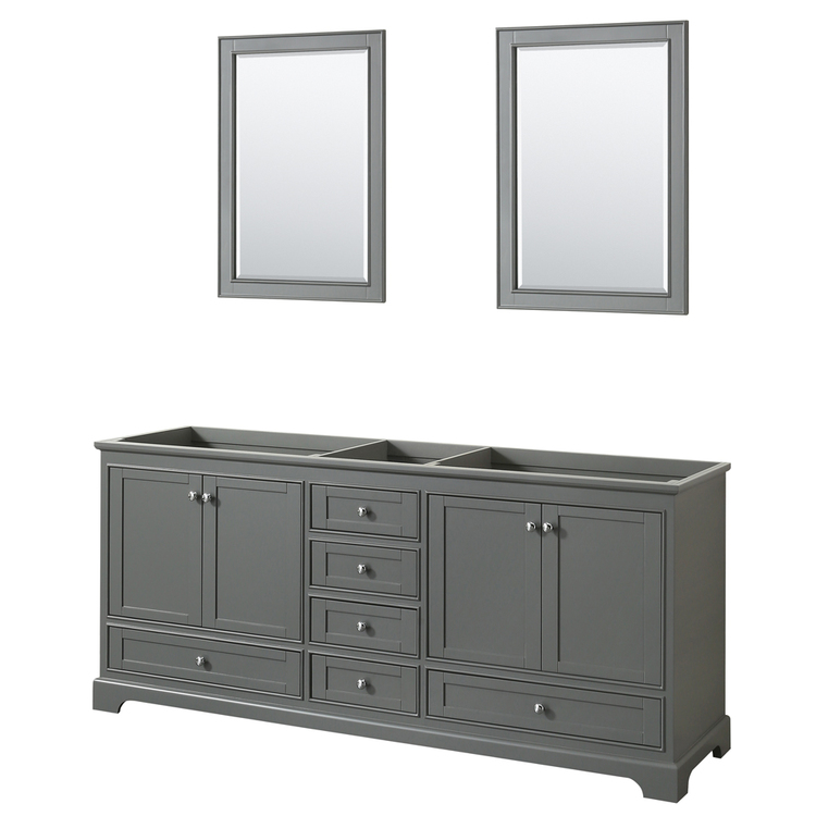 • Wyndham Collection Deborah 80 Inch Double Bathroom Vanity in Dark Gray, No Countertop, No Sinks, and 24 Inch Mirrors image - 1