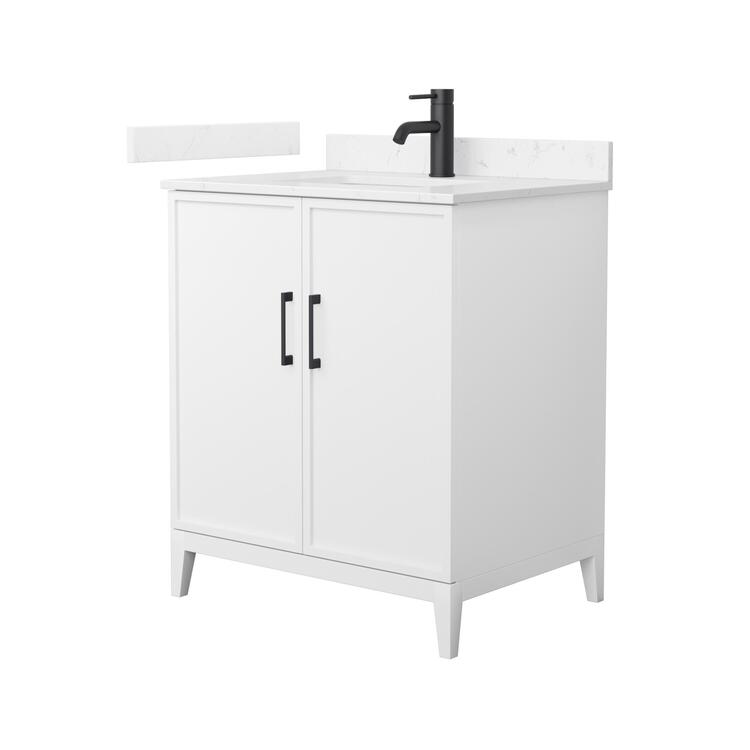 White 30 Inch Single Bathroom Vanity in White Marble and Matte Black