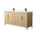 • White Oak Double Vanity Marble Countertop Matte Black Trim image - 1
