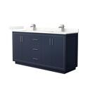 • 66 Inch Double Bathroom Vanity in Dark Blue with Quartz Countertop image - 1
