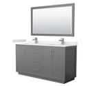 • Wyndham Collection Icon 66 Inch Double Bathroom Vanity in Dark Gray, White Cultured Marble Countertop, Undermount Square Sinks, Brushed Nickel Trim, 58 Inch Mirror image - 1