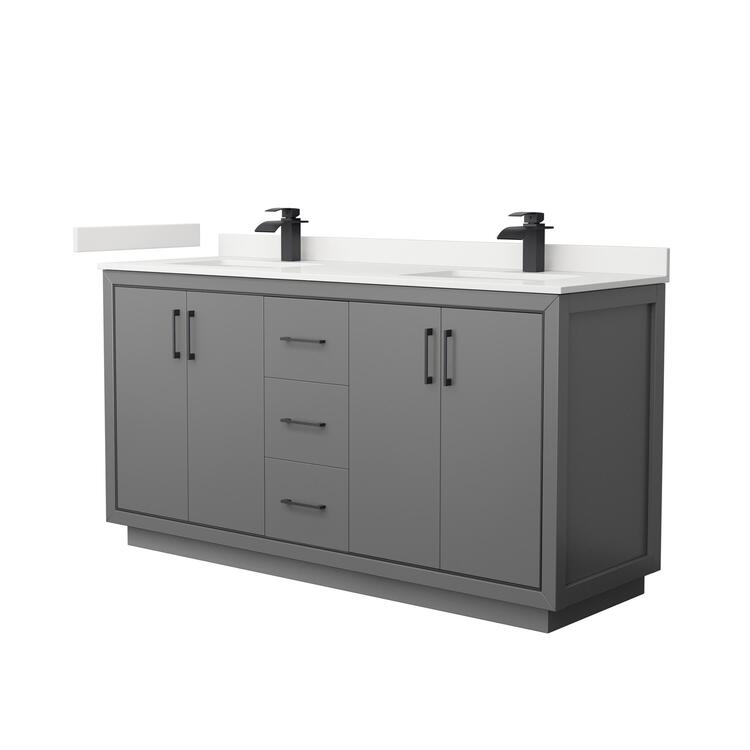 • Wyndham Collection Icon 66 Inch Double Bathroom Vanity in Dark Gray, White Quartz Countertop, Undermount Square Sinks (1-Hole), Matte Black Trim image - 1