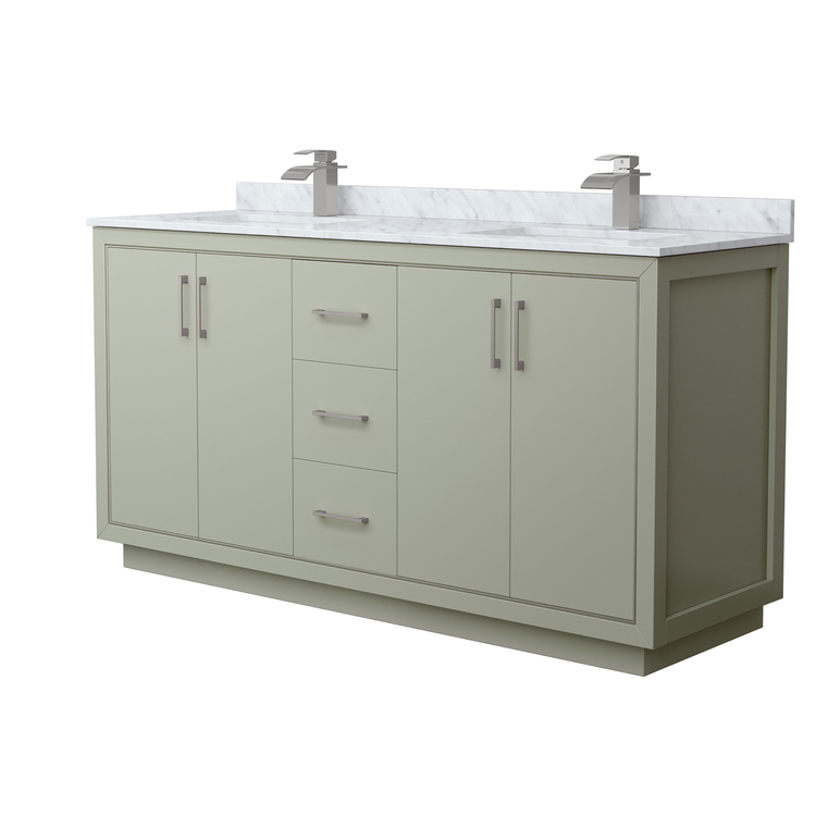 • Double Bathroom Vanity White Marble & Brushed Nickel image - 1