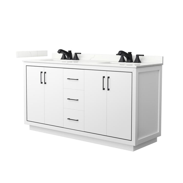 • White 66 Double Bathroom Vanity with Giotto Countertop & Sinks image - 1