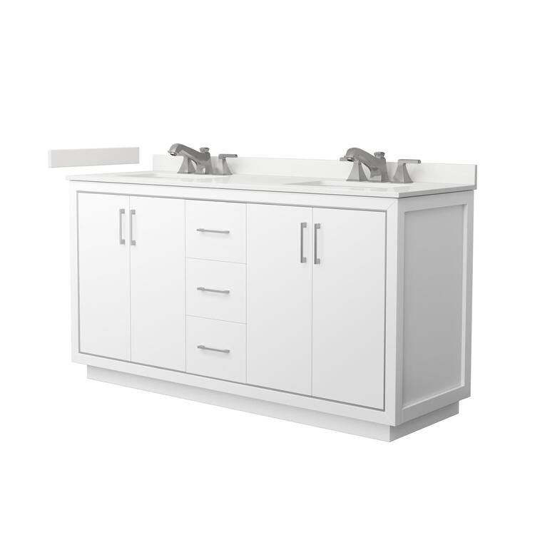• 66 Inch Double Bathroom Vanity White Quartz Sinks Brushed Nickel image - 1