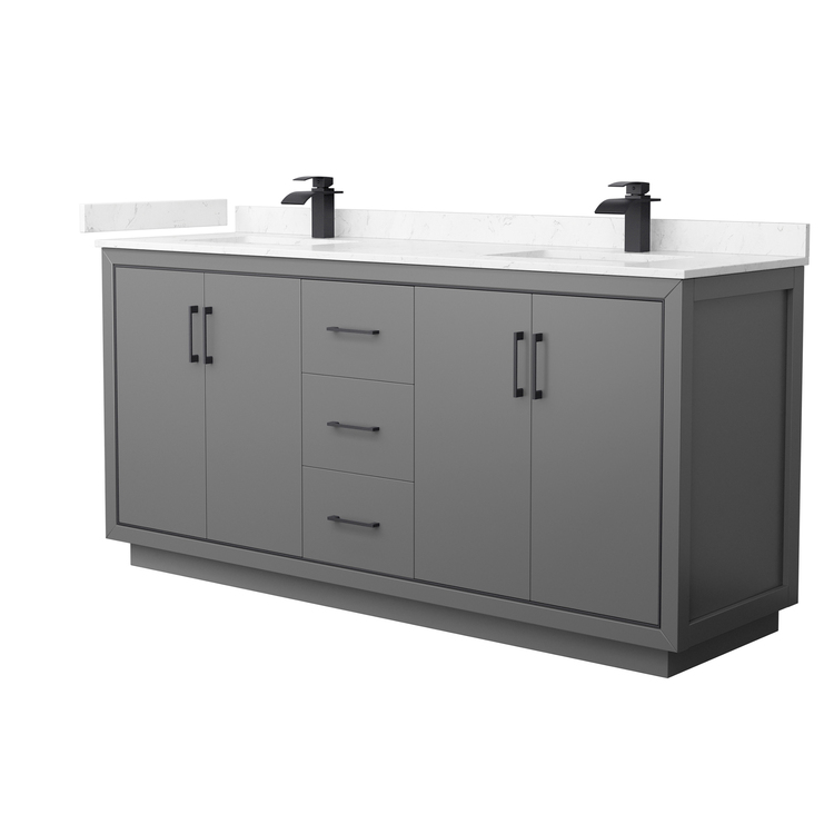 • Dark Gray Vanity w/ Carrara Marble Countertop & Matte Black Trim image - 1