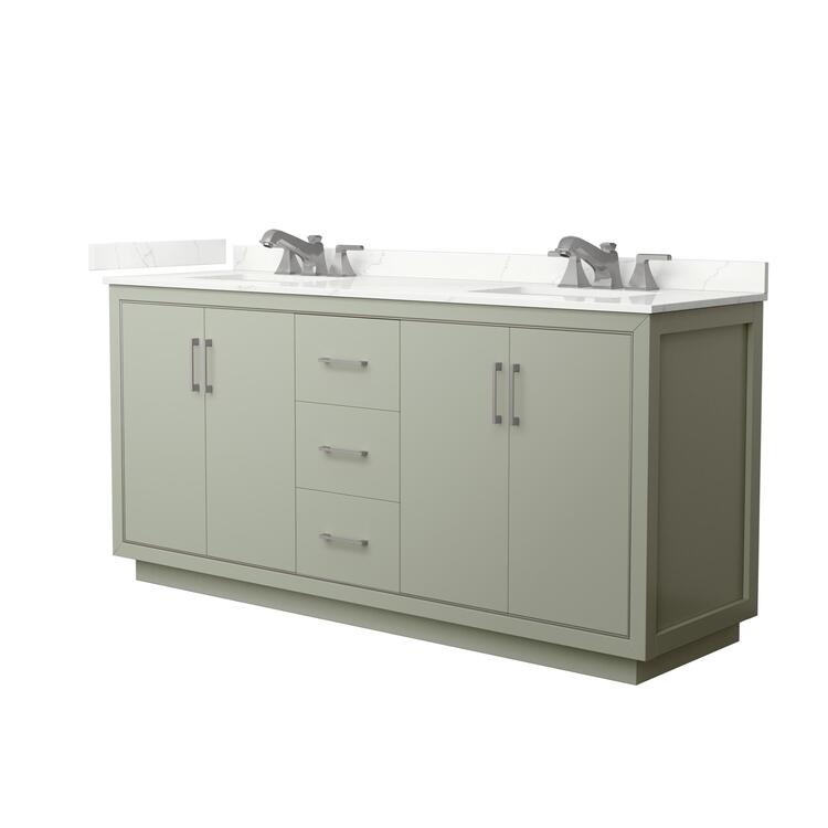 • Double Bathroom Vanity Light Green Countertop Undermount Sinks Brushed Nickel image - 1