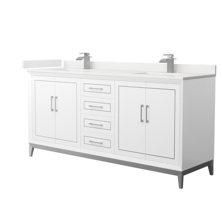 • White Double Bathroom Vanity with Quartz Countertop and Sinks image - 1