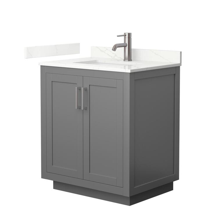 • Gray Bathroom Vanity with Quartz Countertop and Brushed Nickel Hardware 30 Sink image - 1