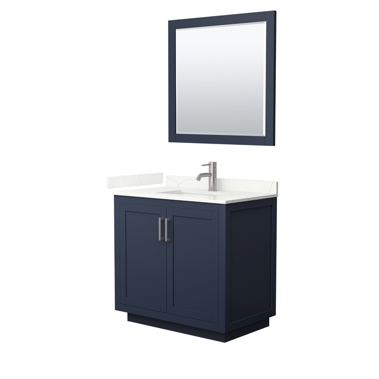 • Dark Blue Bathroom Vanity Set with Quartz Countertop & Brushed Nickel Hardware image - 1