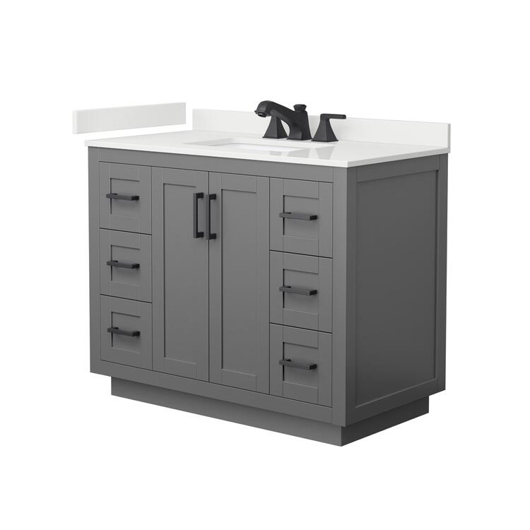 • Wyndham Collection Miranda 42 Inch Single Bathroom Vanity in Dark Gray, White Quartz Countertop, Undermount Square Sink (3-Hole), Matte Black Trim image - 1