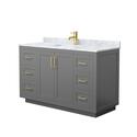 • Wyndham Collection Miranda 54 Inch Single Bathroom Vanity in Dark Gray, White Carrara Marble Countertop, Undermount Square Sink, Brushed Gold Trim image - 1