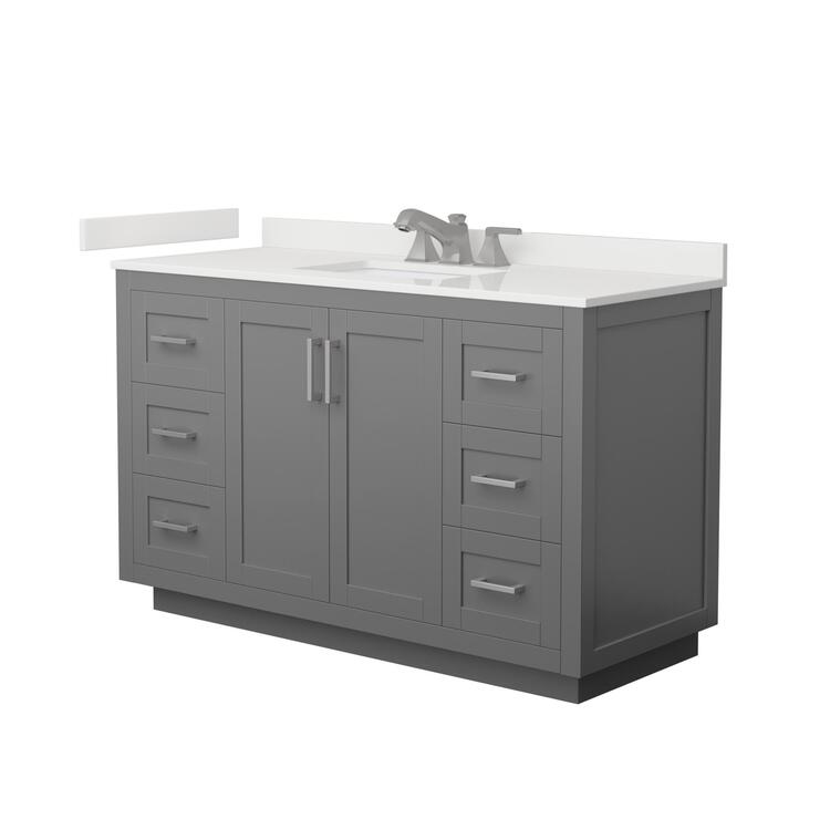 • Gray Bathroom Vanity with White Quartz Countertop & Brushed Nickel Hardware image - 1