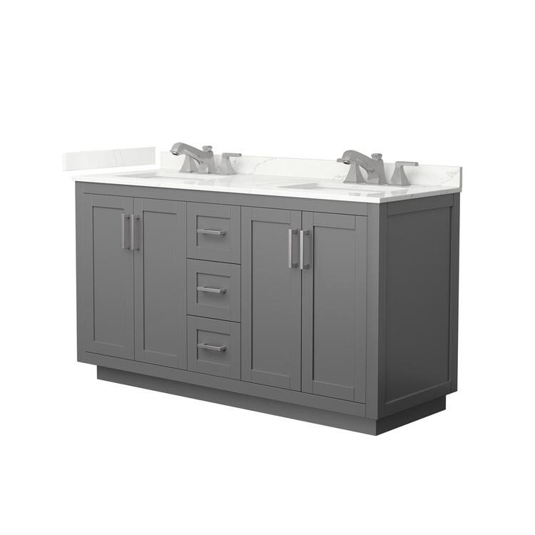 • Gray Double Bathroom Vanity with Giotto Top & Brushed Nickel Hardware image - 1
