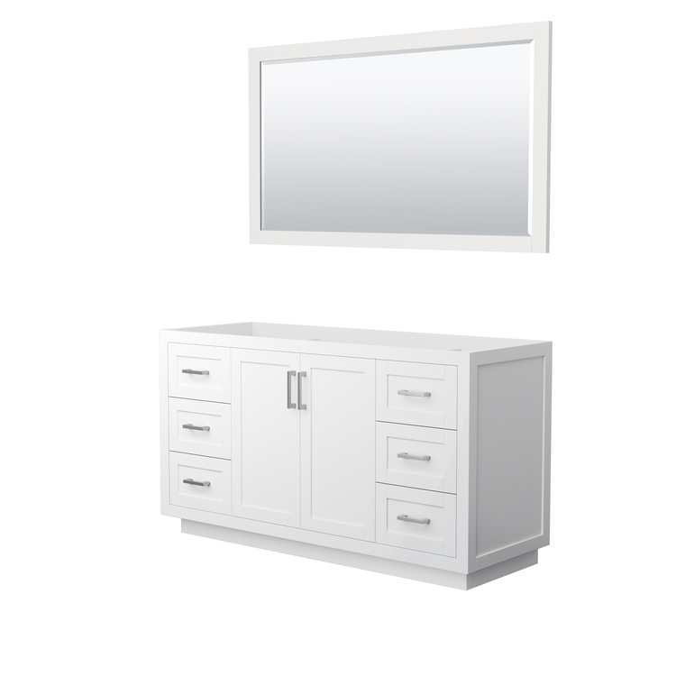 • Wyndham Collection Miranda 60 Inch Single Bathroom Vanity in White, No Countertop, No Sink, Brushed Nickel Trim, 58 Inch Mirror image - 1